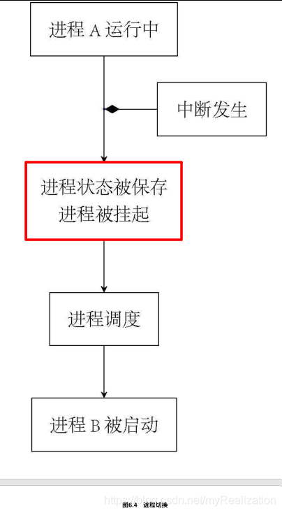 中断处理程序调用进程调度模块,指定下一个应该运行的进程 B ;